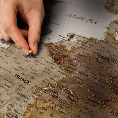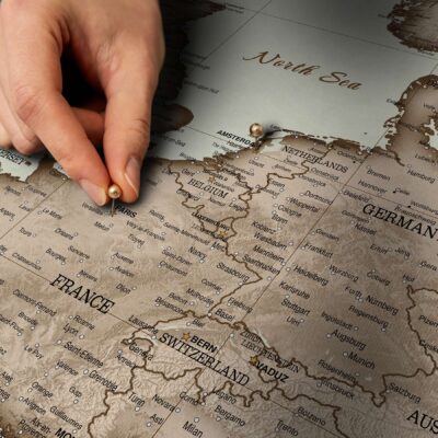 Nasza mapa oferuje możliwość przypinania odwiedzonych miejsc, dzięki czemu wspomnienia z podróży nigdy nie wyblakną. Dzięki drukowaniu w wysokiej rozdzielczości, odwzorowanie krajów, stolic, miast, oceanów i mórz jest aktualne i bardzo szczegółowe. Solidna, trwała konstrukcja mapy sprawia, że jest to wytrzymały element, który przetrwa twoje podróże.