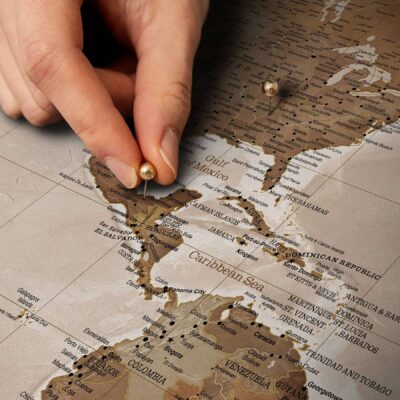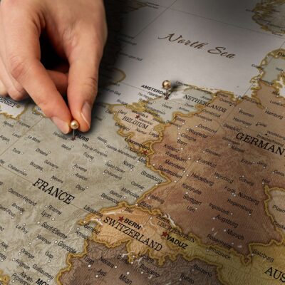 Nasza mapa oferuje możliwość przypinania odwiedzonych miejsc, dzięki czemu wspomnienia z podróży nigdy nie wyblakną. Dzięki drukowaniu w wysokiej rozdzielczości, odwzorowanie krajów, stolic, miast, oceanów i mórz jest aktualne i bardzo szczegółowe. Solidna, trwała konstrukcja mapy sprawia, że jest to wytrzymały element, który przetrwa twoje podróże.
