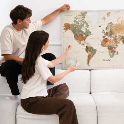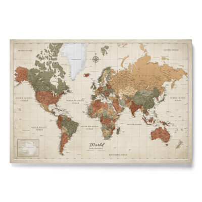 Nasza mapa oferuje możliwość przypinania odwiedzonych miejsc, dzięki czemu wspomnienia z podróży nigdy nie wyblakną. Dzięki drukowaniu w wysokiej rozdzielczości, odwzorowanie krajów, stolic, miast, oceanów i mórz jest aktualne i bardzo szczegółowe. Solidna, trwała konstrukcja mapy sprawia, że jest to wytrzymały element, który przetrwa twoje podróże.