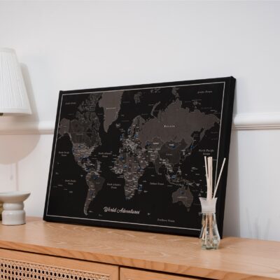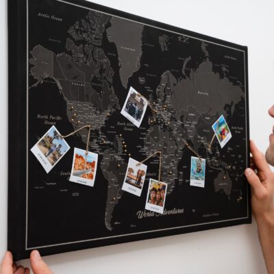 Nasza mapa oferuje możliwość przypinania odwiedzonych miejsc, dzięki czemu wspomnienia z podróży nigdy nie wyblakną. Dzięki drukowaniu w wysokiej rozdzielczości, odwzorowanie wszystkich krajów oraz większych wysp. Solidna, trwała konstrukcja mapy sprawia, że jest to wytrzymały element, który przetrwa twoje podróże.