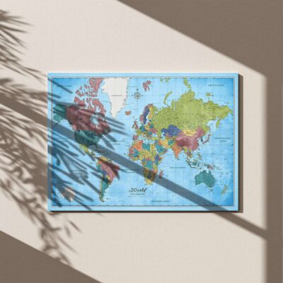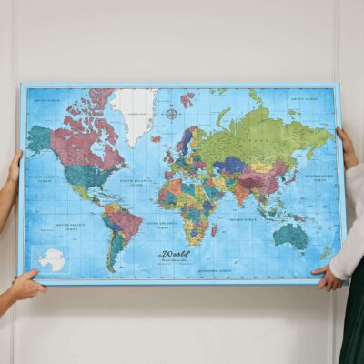 Nasza mapa oferuje możliwość przypinania odwiedzonych miejsc, dzięki czemu wspomnienia z podróży nigdy nie wyblakną. Dzięki drukowaniu w wysokiej rozdzielczości, odwzorowanie krajów, stolic, miast, oceanów i mórz jest aktualne i bardzo szczegółowe. Solidna, trwała konstrukcja mapy sprawia, że jest to wytrzymały element, który przetrwa twoje podróże.