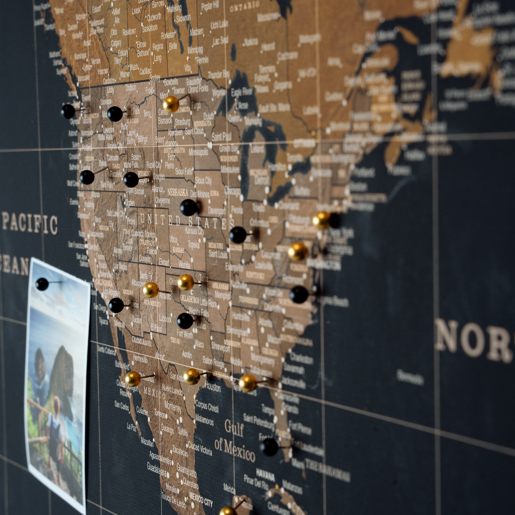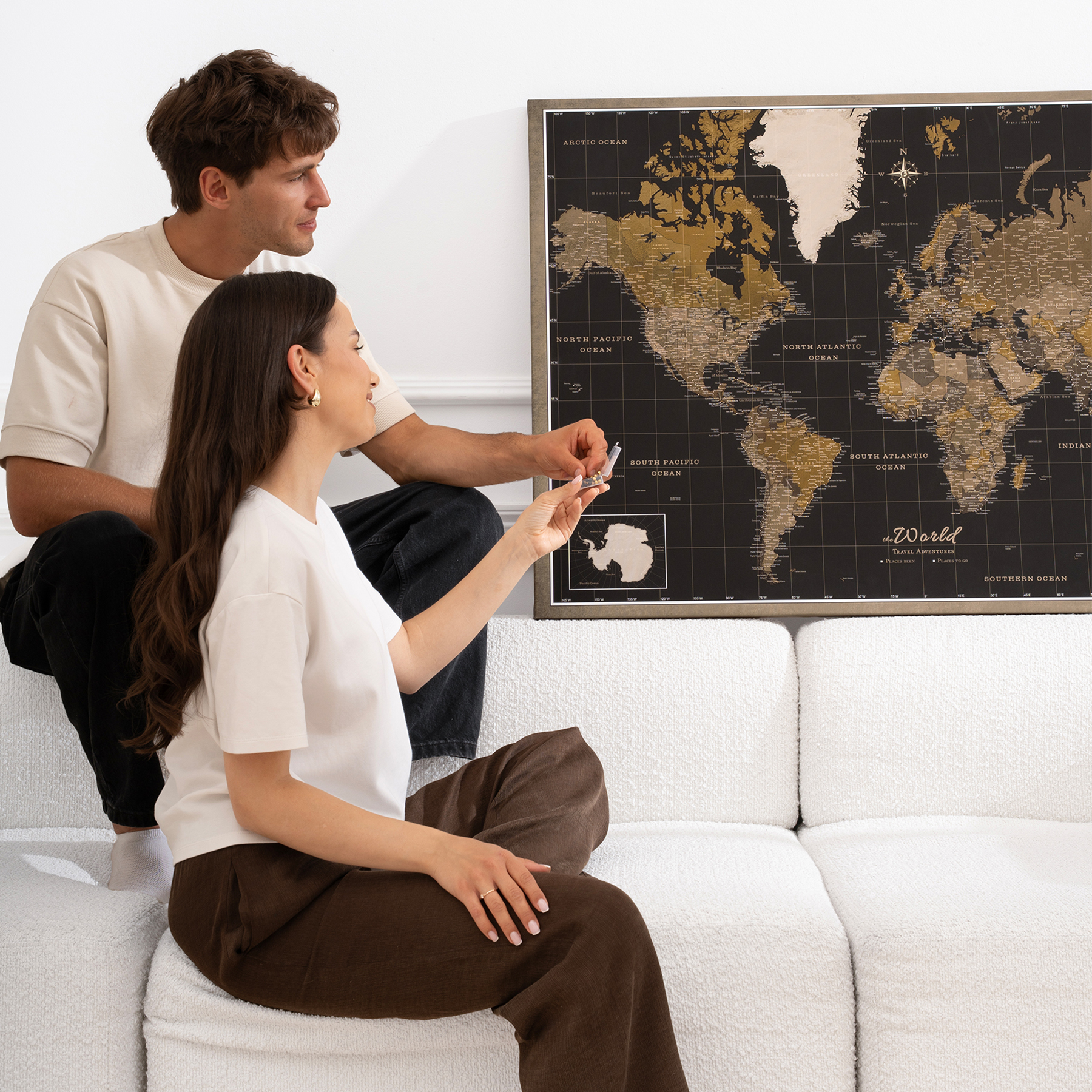 Nasza mapa oferuje możliwość przypinania odwiedzonych miejsc, dzięki czemu wspomnienia z podróży nigdy nie wyblakną. Dzięki drukowaniu w wysokiej rozdzielczości, odwzorowanie krajów, stolic, miast, oceanów i mórz jest aktualne i bardzo szczegółowe. Solidna, trwała konstrukcja mapy sprawia, że jest to wytrzymały element, który przetrwa twoje podróże.
