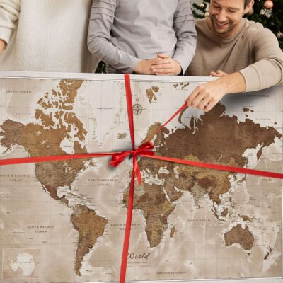 Nasza mapa oferuje możliwość przypinania odwiedzonych miejsc, dzięki czemu wspomnienia z podróży nigdy nie wyblakną. Dzięki drukowaniu w wysokiej rozdzielczości, odwzorowanie krajów, stolic, miast, oceanów i mórz jest aktualne i bardzo szczegółowe. Solidna, trwała konstrukcja mapy sprawia, że jest to wytrzymały element, który przetrwa twoje podróże.